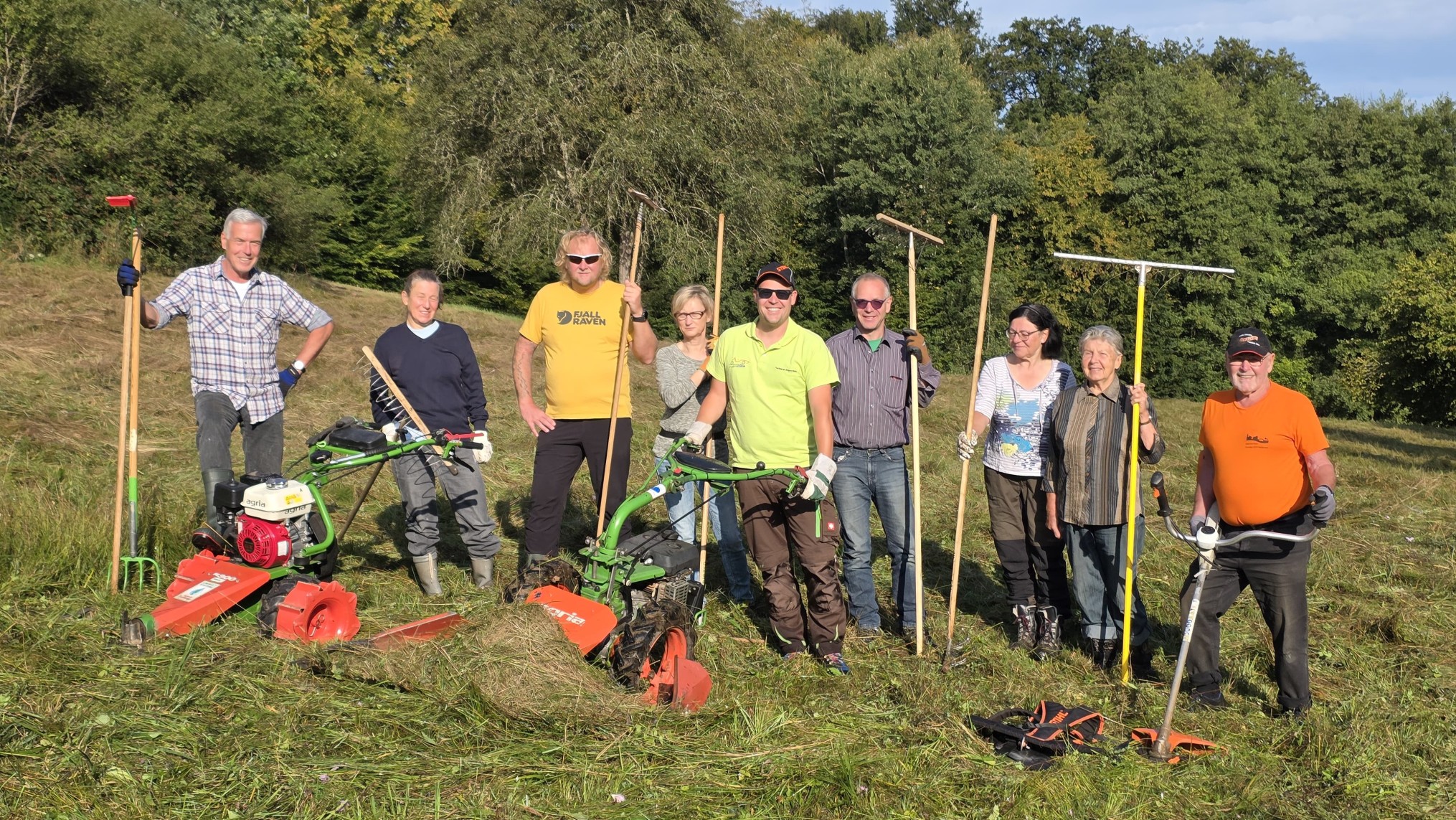Ebenso wird die Wiese einmal im Jahr mit viel Aufwand (Muskelkraft) manuell gemäht und das Gras von Hand abgetragen, um möglichst wenig Stickstoffeintrag in den Boden zu gewährleisten.